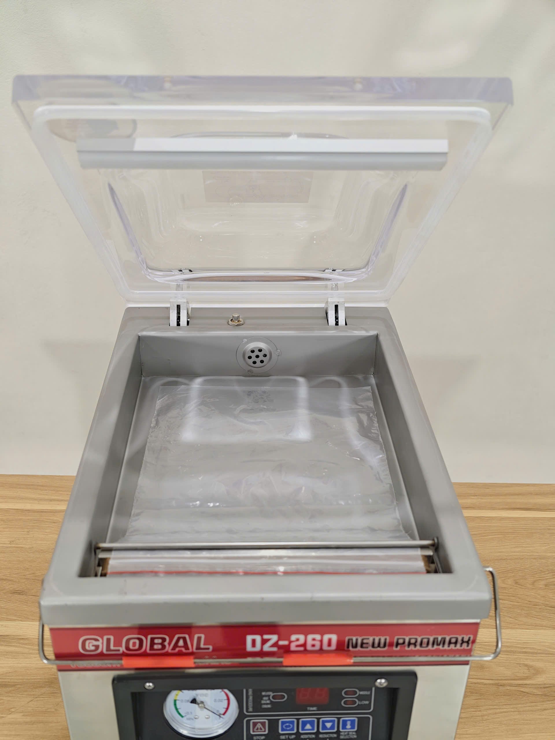 Máy DZ260 Promax được trang bị buồng hút chân không có kích thước 320 x 390 x 60mm, đủ rộng để đóng gói nhiều loại thực phẩm khác nhau, kể cả những sản phẩm có kích thước lớn.